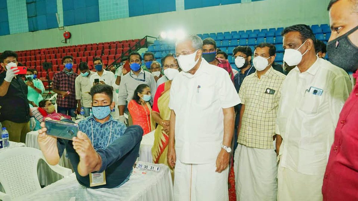 ഇതിൽ പ്രണവും സ്വപ്നയും കാൽവിരലുകൾ കൊണ്ട് വരച്ച ചിത്രങ്ങളാണ് സമ്മാനിച്ചത്. ഇതിനൊപ്പം കാൽകൊണ്ട് മുഖ്യമന്ത്രിക്കൊപ്പം സെൽഫിയെടുക്കാനും പ്രണവ് സമയം കണ്ടെത്തി.