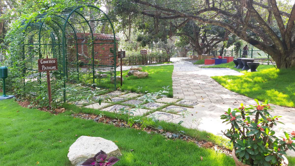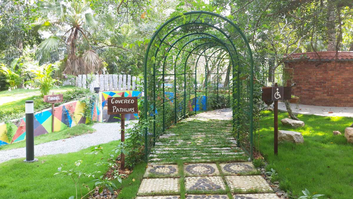 ടൈൽ വിരിച്ച പാതകളും പൂക്കൾ തളിർത്ത വള്ളിച്ചെടികൾ ഇടതൂർന്ന് വളർന്നിറങ്ങിയ ചെറു ടണലുകളും മുളയിൽ തീർത്ത ഐലൻഡുമൊക്കെയായി തിരുവനന്തപുരത്തെ മ്യൂസിയം കോമ്പൗണ്ടിലെ ഭിന്നശേഷി സൗഹൃദപാർക്ക് പുത്തൻ മനോഹാരിതയിൽ.