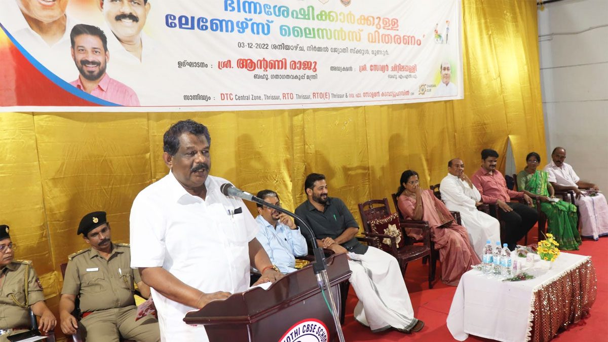 തൃശൂർ: മോട്ടോർ വാഹന വകുപ്പ് ഭിന്നശേഷിക്കാരായ വ്യക്തികൾക്ക് ലേണേഴ്സ് ലൈസൻസ് ലഭ്യമാക്കുന്ന ‘കൈ കോർക്കാം, ചേർത്ത് നിർത്താം’ പരിപാടി ഗതാഗത വകുപ്പ് മന്ത്രി ആന്റണി രാജു ഉദ്ഘാടനം ചെയ്തു.