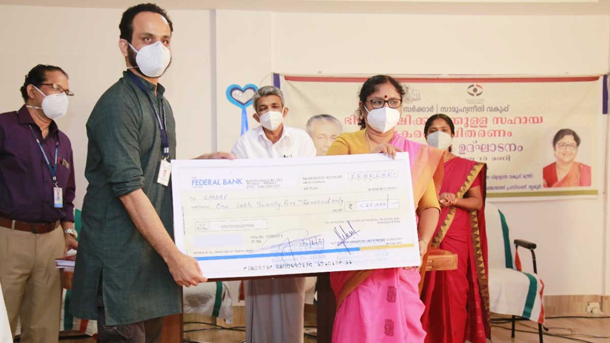 മുഖ്യമന്ത്രിയുടെ ദുരിതാശ്വാസ നിധിയിലേക്കുള്ള നിപ്മര് ജീവനക്കാരുടെ വിഹിതത്തിന്റെ ചെക്ക് ചടങ്ങില് ഡോ. മുഹമ്മദ് അഷീല് മന്ത്രിക്ക് കൈമാറി.